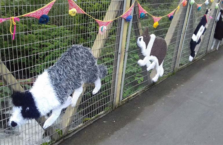 Buoyed up by their success, the Yarn Bombers got together again early in 2016 and made plans to repeat the display. Some key characters from the previous year were washed, dried and spruced up, then put back out. However two days after Gwril was put back on his perch on the bridge, he mysteriously disappeared overnight! Police were involved, newspapers informed and even ITV Cymru reported on his disappearance. Sadly, however, Gwril was never found or returned. Undaunted the intrepid ladies (and by now - also men) took to their knitting needles and created Gwril II, who now sits proudly on the bridge overseeing everything that passes over the bridge. This time he's protected by a tracking device!